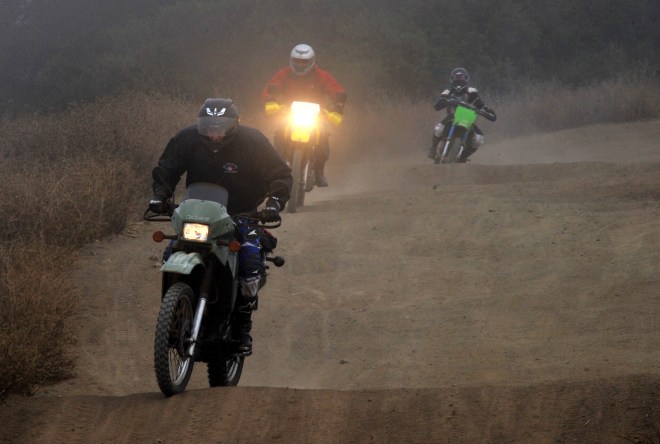 A couple of days before the weekend, I hooked up with a few dirt riders online and they graciously agreed to help me with my first dirt ride. I rode out to Metcalf on the foggy Labor Day morning at reached there just as the park opened (8AM). Joel was the experienced one (on his YZ450F) and Steve (on his KLR650, pictured below) had had a couple of dirt rides before.