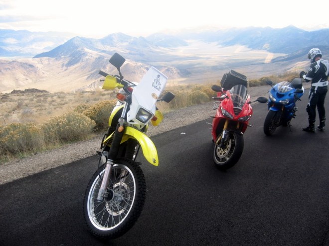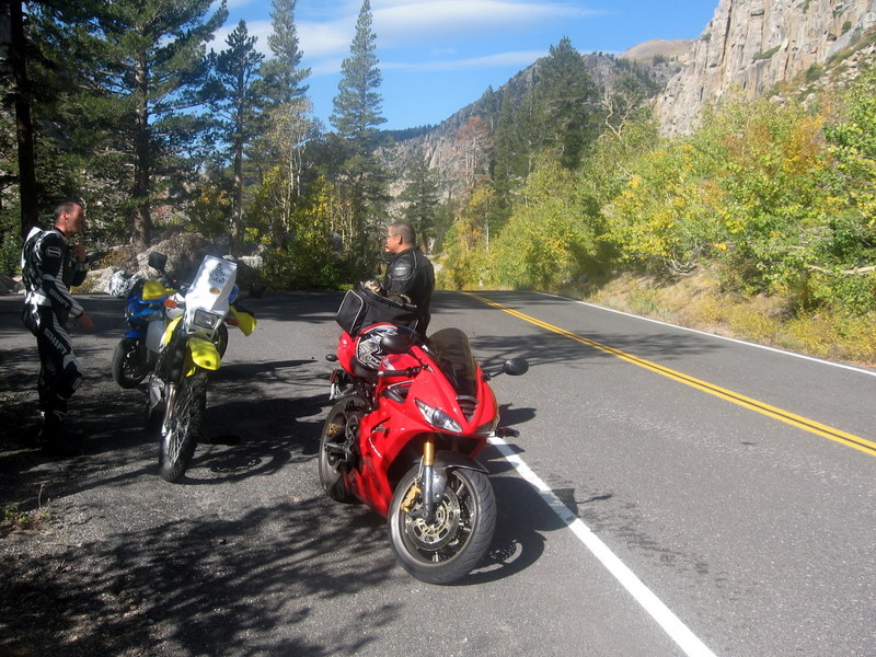 As the altitude increased, the air got cooler and the DR started slowing down. Over the Sonora Pass, the loss in power is really noticeable. The DR still does have plenty power, but the sport bikes were a lot faster than me.