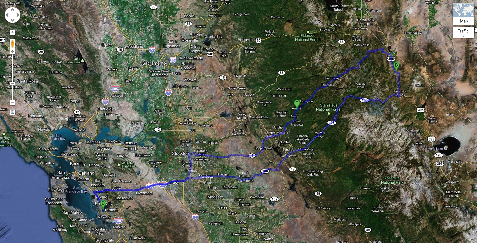 Route: Home –> Hwy 108 (Sonora Pass) –> Hwy 395 –> Hwy 89 (Monitor Pass) –> Hwy 4 (Ebbetts Pass) –> Home