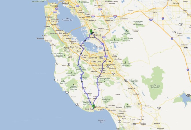 On our way back we rode the freeway: Hwy 17 to I880. Boring but a quick and efficient return.