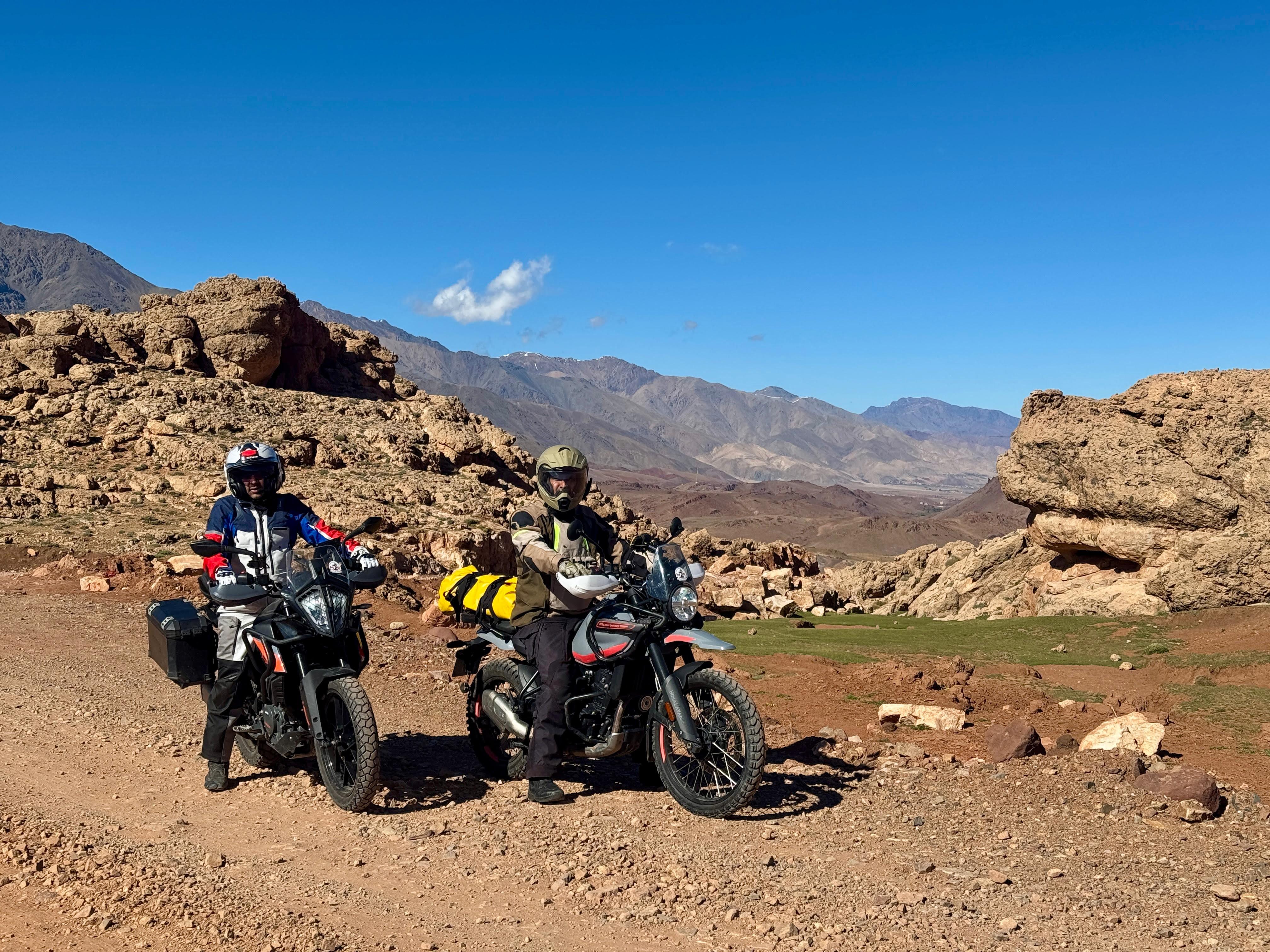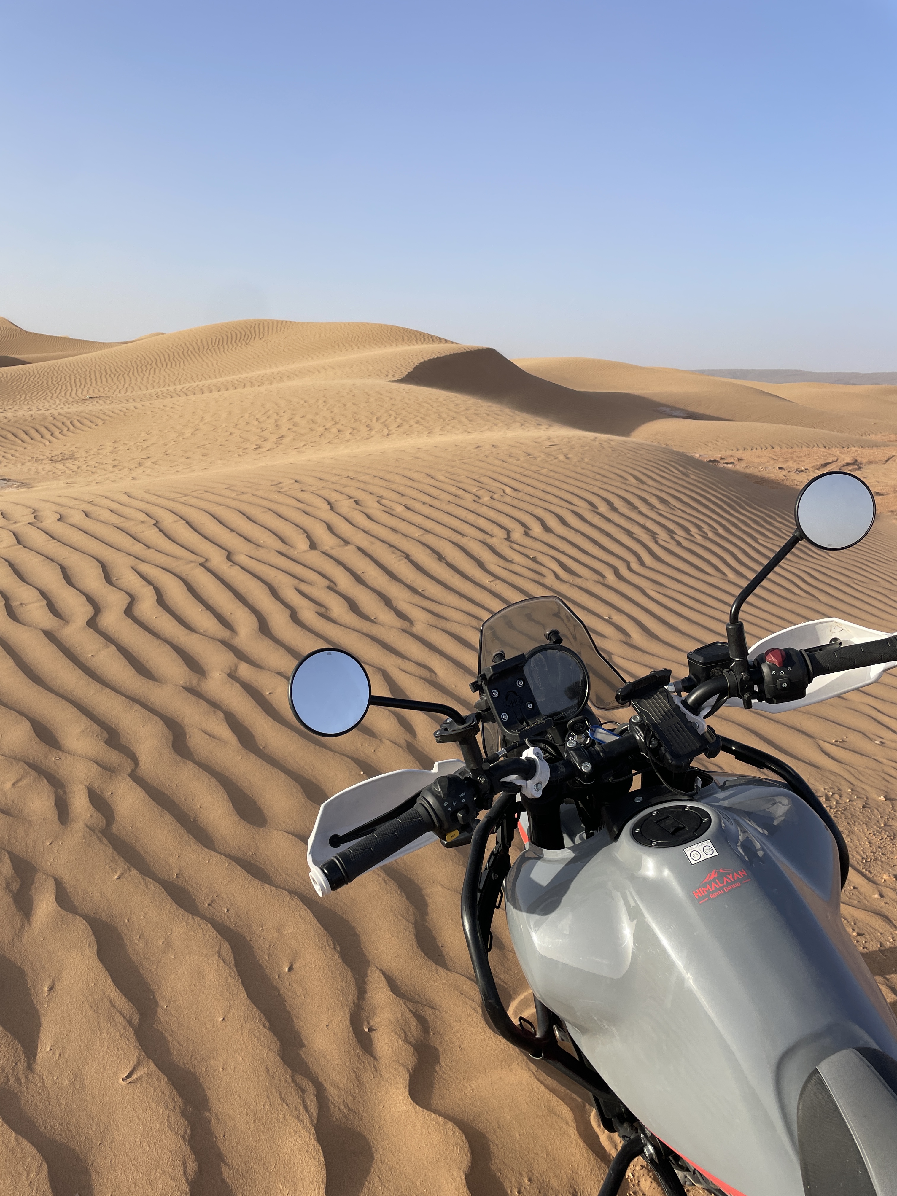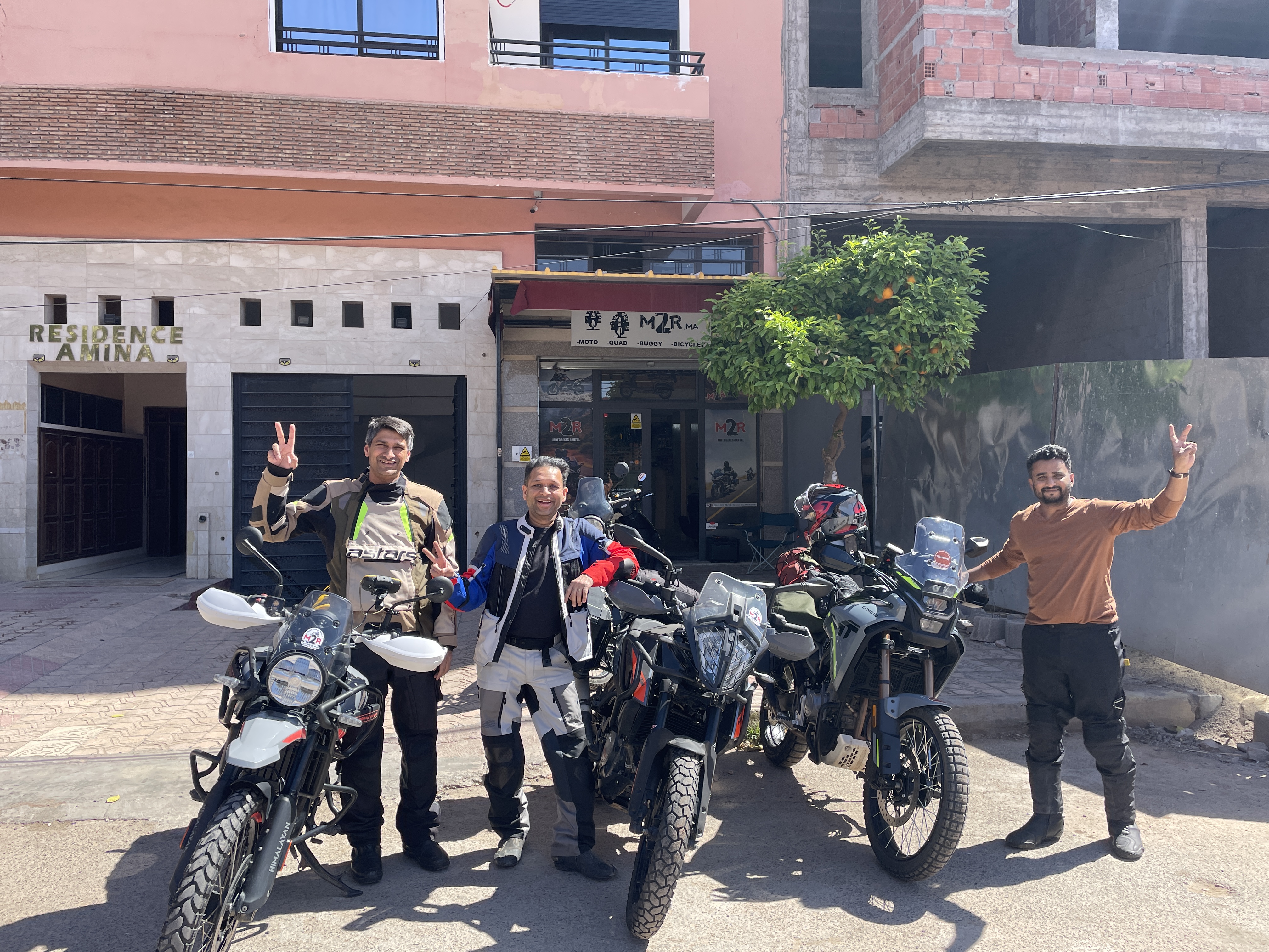 We picked up our bikes from “Bikes 2 Rent” in Marrakesh. Apparently, it was the oldest and most widely used motorcycle rental place. Shobhit got a KTM 390 and I got a Royal Enfield Himalayan 450. Gokul rented a CF Moto 450MT from a different rental company, Tenere Riders.