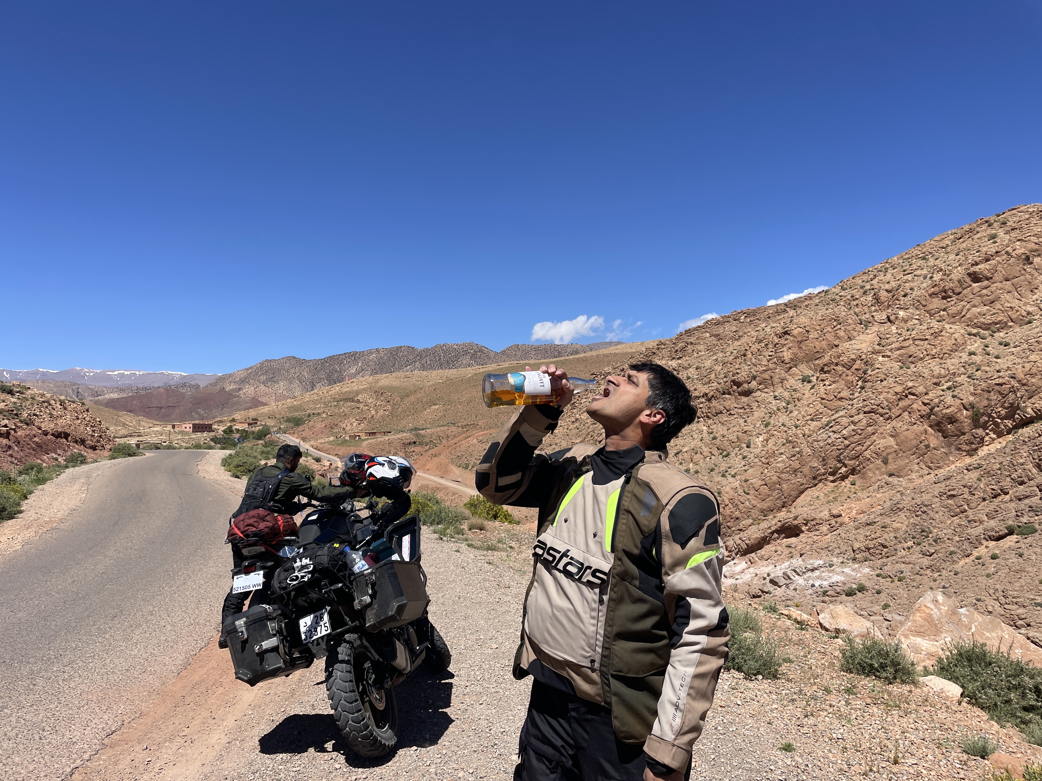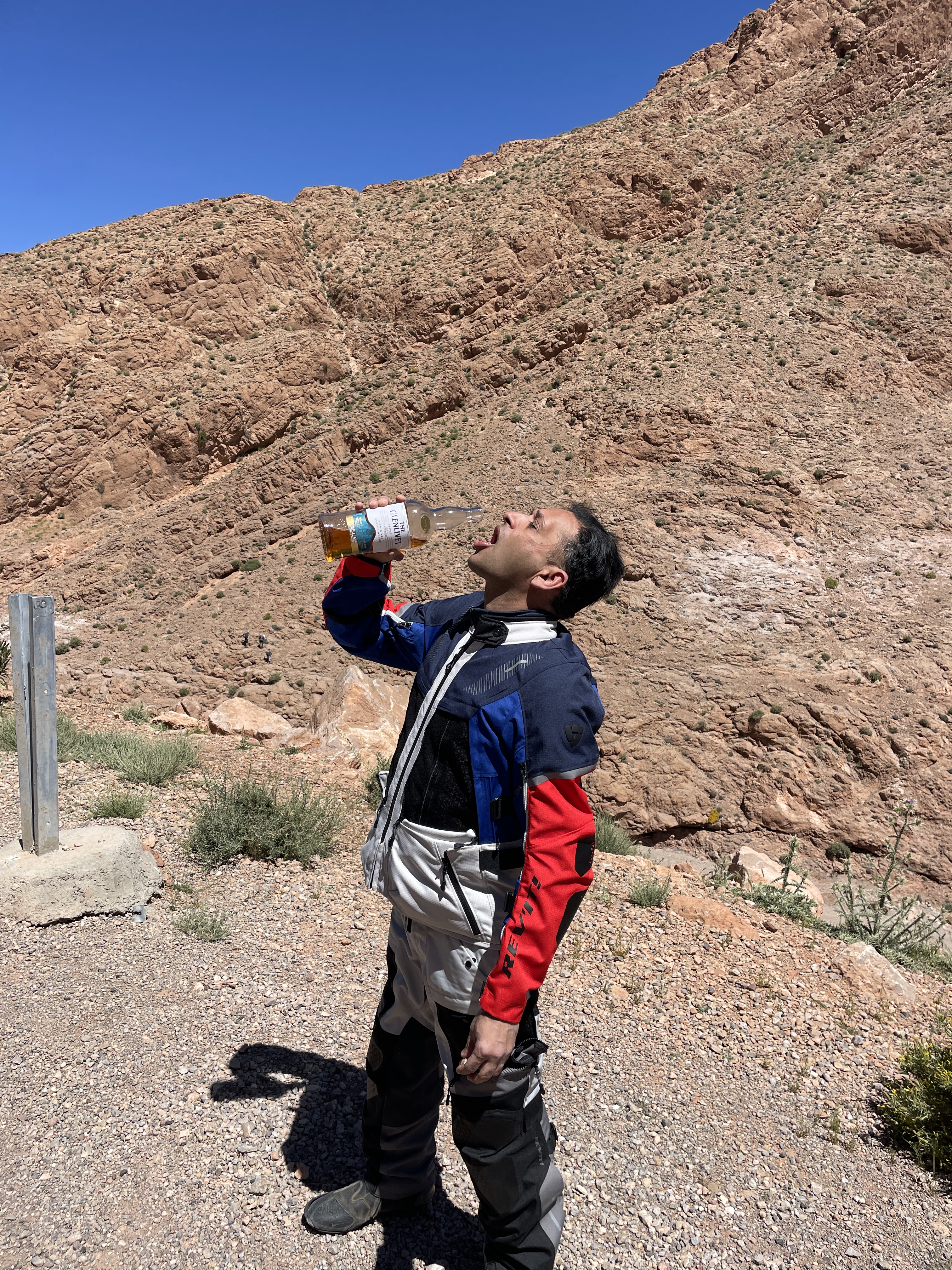 From Amejgag we rode towards Dadès Gorges. We randomly stopped on the side of the road for a mid-morning shot of whisky.