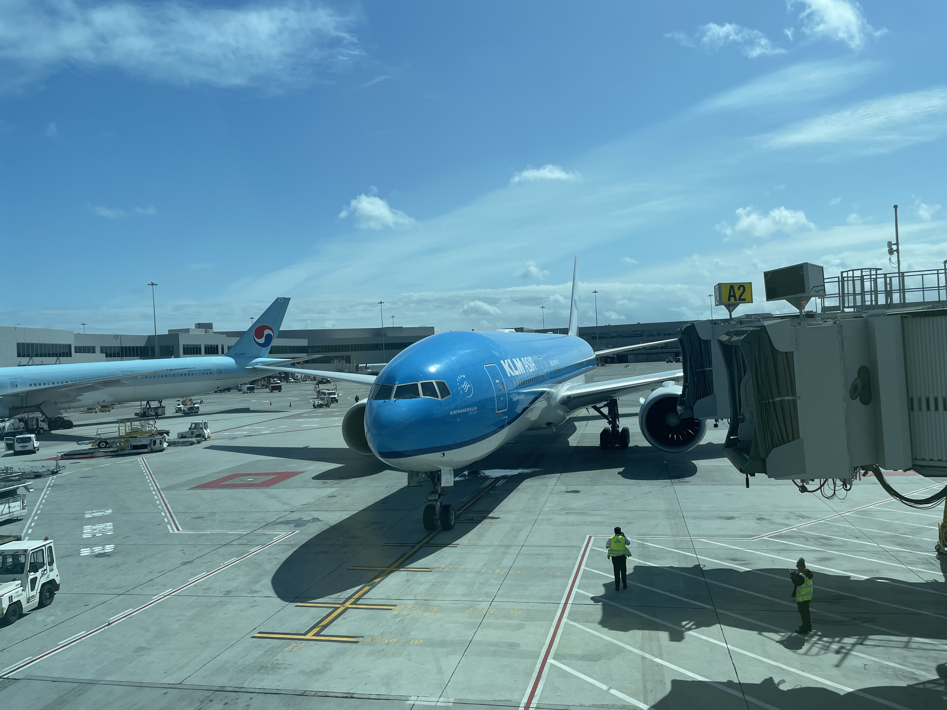 Later that afternoon, we headed to the airport. We had dinner there and boarded our flight to Amsterdam. As we flew over Paris, I glanced out the window and caught a clear view of the Eiffel Tower, so I took a picture.
