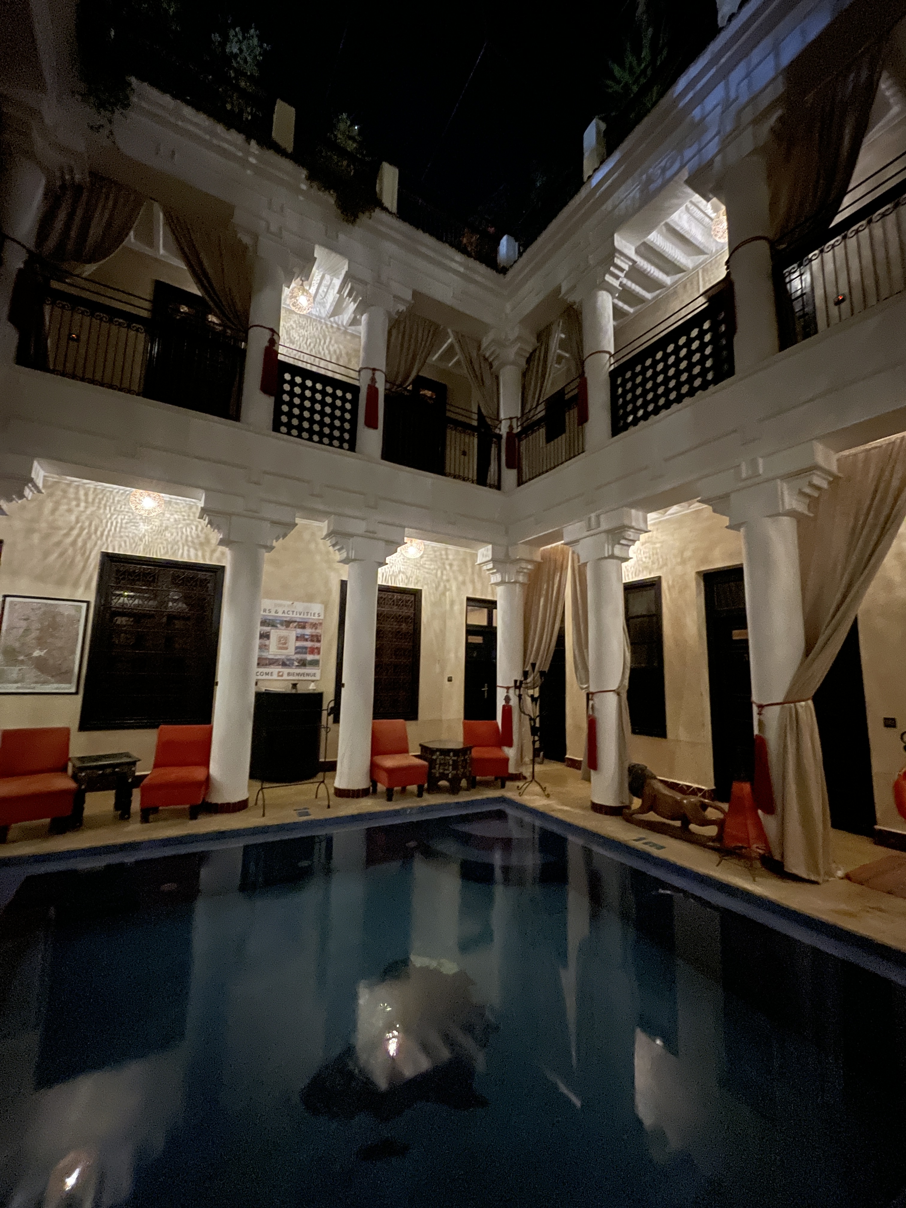We made it back to Marrakech in time to return the bikes that same day. Then we took a taxi to our hotel, Riad Dar Fanny: a beautiful little riad in the center of the Medina with just seven or eight rooms. Goku did a great job of picking hotels, indeed.